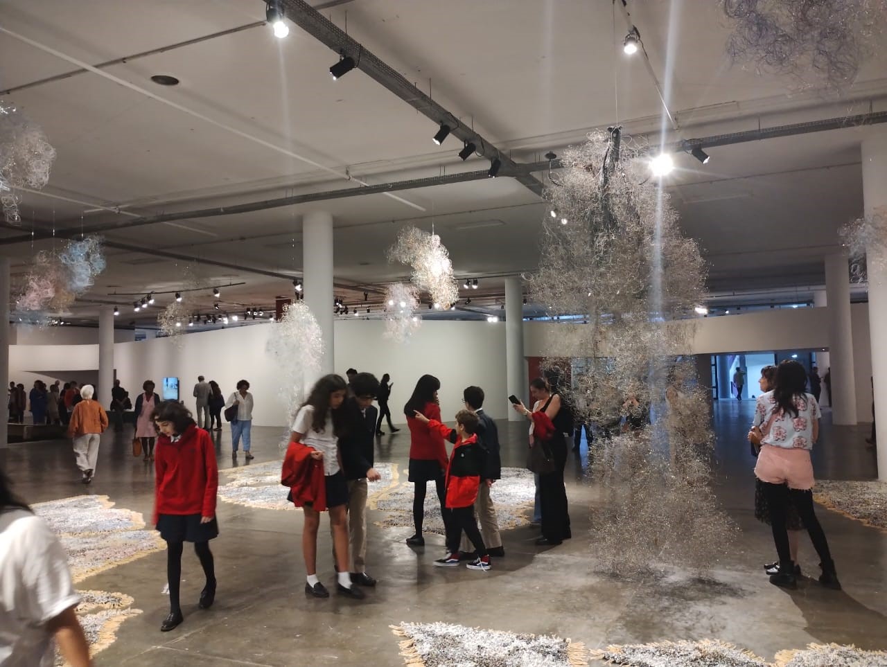 Os alunos, acompanhados pelos pais, participaram numa visita guiada exclusiva e foram acompanhados pelos seus professores de Artes, Sra. Rebelo e Sr. Muller. Durante a visita, os alunos tiveram o privilégio de conhecer exemplares internacionais de arte contemporânea ao lado de peças de artistas brasileiros. Eles também tiveram a oportunidade única de conhecer e conversar com o artista filipino Kidlat Tagimik, que explicou as ideias por trás de sua instalação e respondeu às perguntas dos nossos alunos. “Foi um verdadeiro privilégio conhecê-lo, ele é muito gentil e acessível”, diz Analice, mãe da nossa bolsista Elisa.